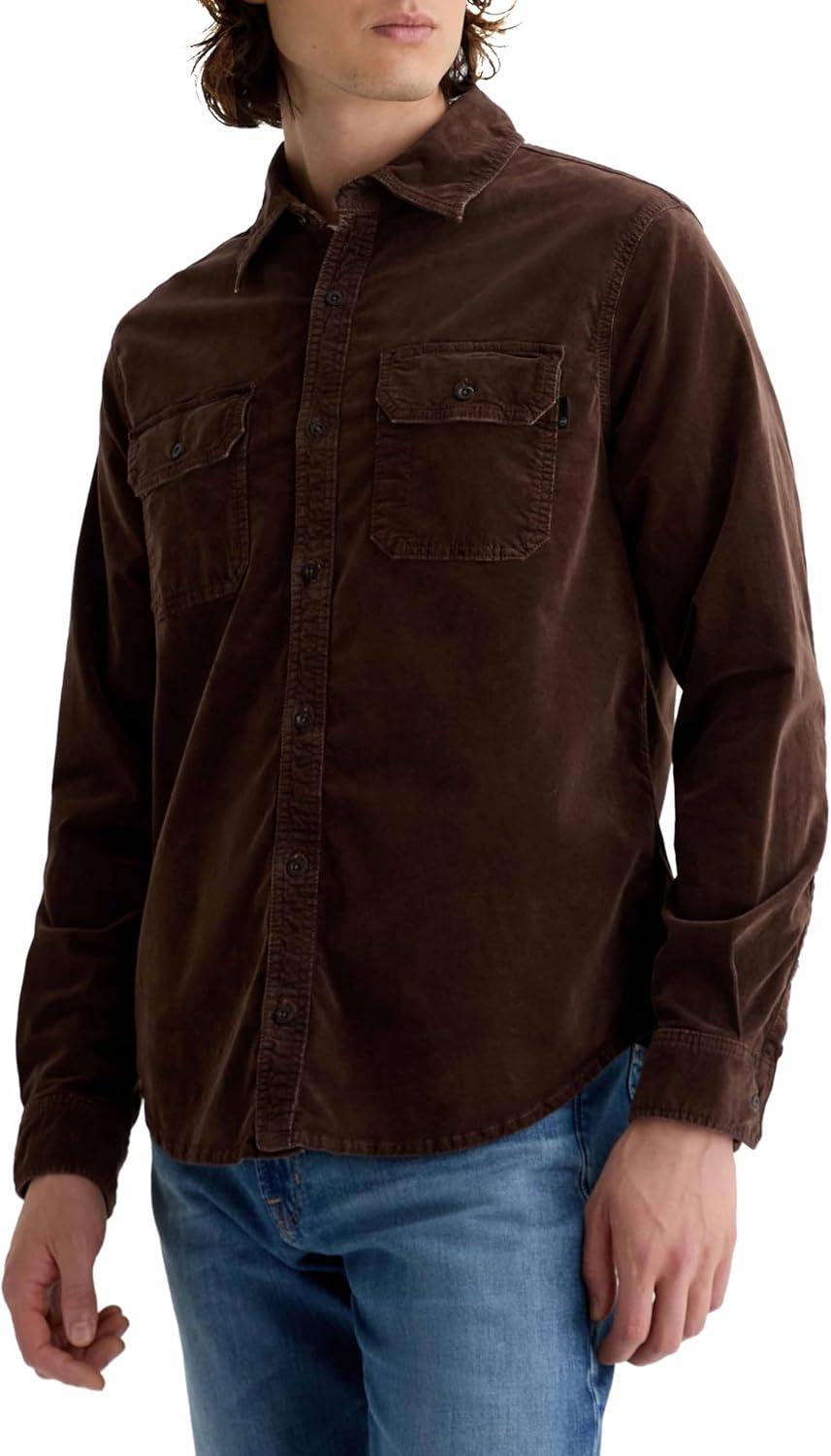 AG Adriano Goldschmied Mens Curtis Classic Fit Work Shirt(Sulfur Raw Umber)