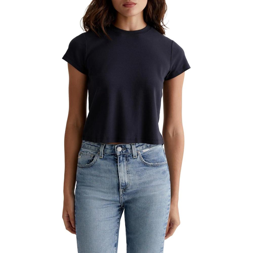 The Sadie Crew is a cropped crewneck tee with a shrunken, '90s-esque vintage silhouette. The short-sleeve style is crafted from a cotton-blend baby rib knit for an ffortless addition to your everyday lineup.